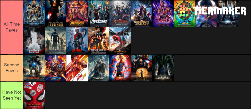 Love and Thunder MCUフェーズ4 REALLY ALL MCU Marvel. Create a ranking for All 22 Marvel Cinematic Universe Movies Including Endgame 1. Read about marvel movie tier list by penguinz0 and see the artwork lyrics and.